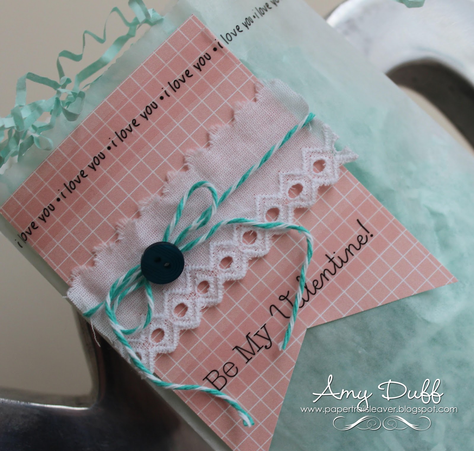 I used the largest bag and added a pennant with a touch of lace and Ocean twine from the Twinery to embellish.